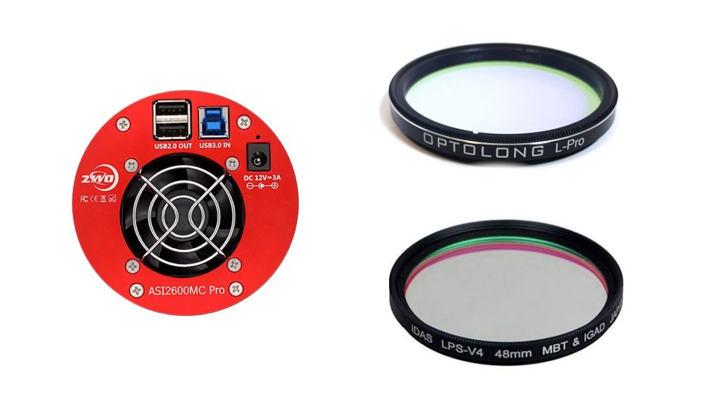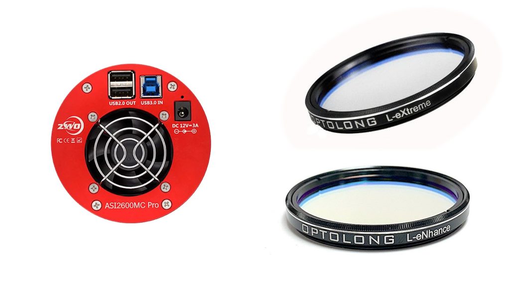 Color cameras, like the ASI2600MC Pro, are generally more affordable—typically around $1,500 USD—and much easier to use. They include a built-in IR-cut filter, so you can start imaging just like with a regular camera. No need for extra filters or a filter wheel unless you want to. If you’re dealing with city glow, you can add a broadband light-pollution filter like the Optolong L-Pro or IDAS LPS. Or, you can enhance contrast with duo- or tri-band narrowband filters, like the Optolong L-Extreme or L-Ultimate, to capture hydrogen-alpha and oxygen emissions from nebulae.